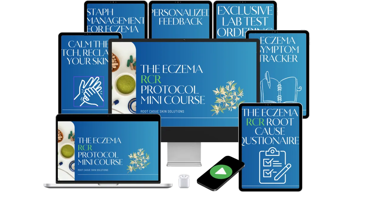 Get the Eczema RCR Protocol Moni Course Today. Dont wait anoter day to iscover what is driving your eczema flairs. You dont have to live with relentlessly itchy skin. Start your journey to irch free, smooth and healthy skin today!